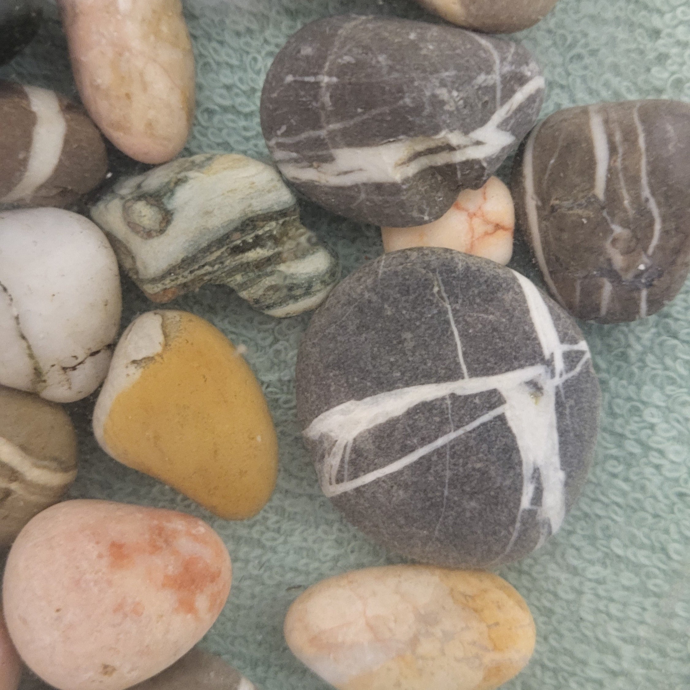 Ich liebe es, schöne Dinge zu finden. Am Strand, im Wald, wo auch immer ich unterwegs bin. Ich finde gute Gespräche, glitzernde Gräser im Sonnenlicht, magische Wasserspiegelungen, Muscheln aller Art und natürlich schon immer und immer wieder: Steine. Wenn sie nicht mehr nass glänzend am Strand lagen sondern unscheinbar beim auspacken zuhause, war ich immer enttäuscht. Umso begeisterter bin ich, dass ich den Mut hatte, an einer alten Messerschleifmaschine zu beginnen, meine Mitbringsel, Muschelkalsteine aus den Alpen, zu schleifen. Bald erfüllte die Maschine nicht mehr meine Anforderungen und ich kaufte mir eine Profi- Edelsteinschleifmaschine. Meine großen gerundeten Steine, die Cabochons, schleife ich nun großteils selbst und ich finde es gerade interessant, dabei auf ungewöhnliche, besondere Formen oder Farbausschnitte zu achten. Denn jeder Stein ist anders. Seine Besonderheiten abseits von Perfektion zu finden und sichtbar zu machen, ist meine Liebe.