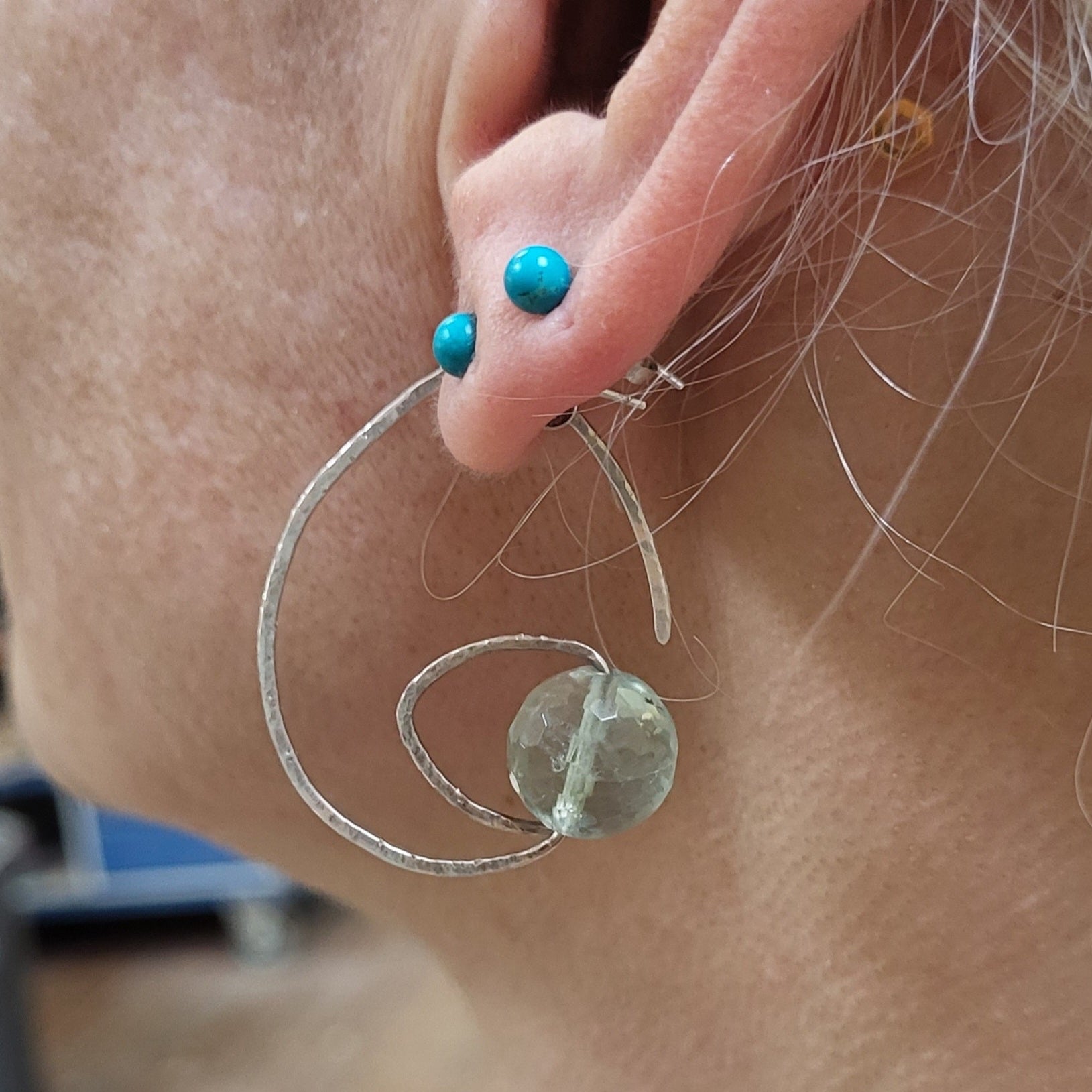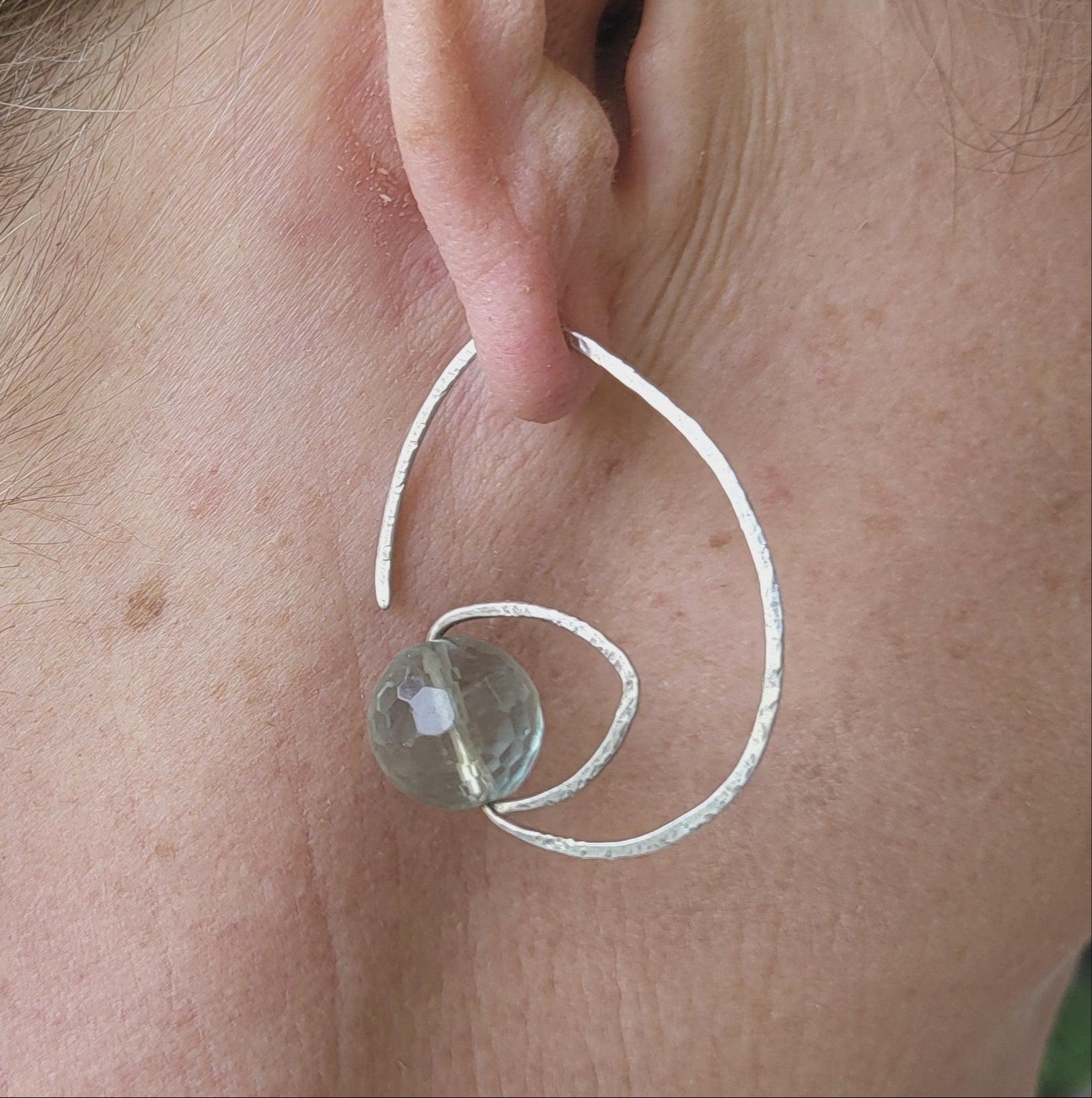 Jeder Ohrring trägt eine grüne, durchscheinende Fluorit-Perle, die mit ihrem natürlichen Glanz einen edlen Akzent setzt und das organische Design perfekt abrundet. Der Name GROW steht für Wachstum und Entwicklung – ein Schmuckstück, das Wandel und Lebendigkeit in sich trägt und gleichzeitig zeitlose Eleganz vermittelt.