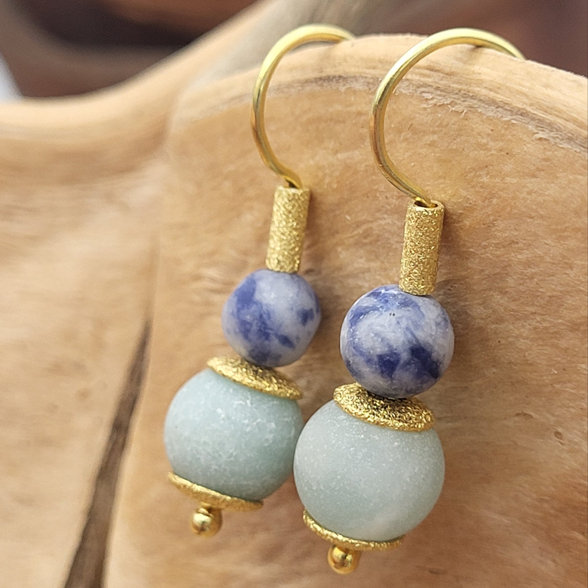 Seashore- Ohrhänger mit Amazonit- und Sodalithperlen